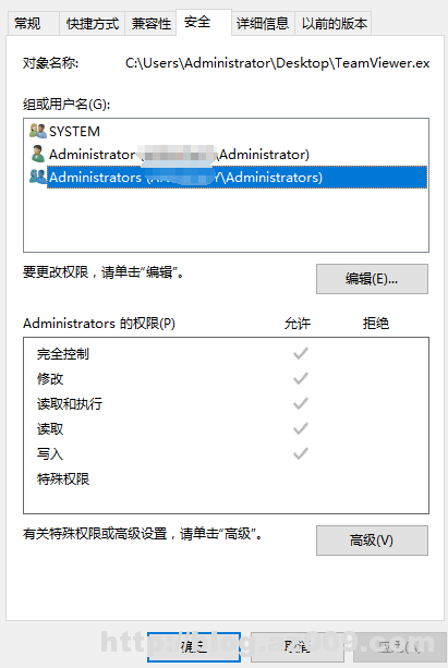 然后切换到安全选项卡,将所列的用户身份均调为完全控制,点击编辑 勾选完全控制,应用后确定,若调整完后可以回过头再看看是不是都是完全控制了,如下图: