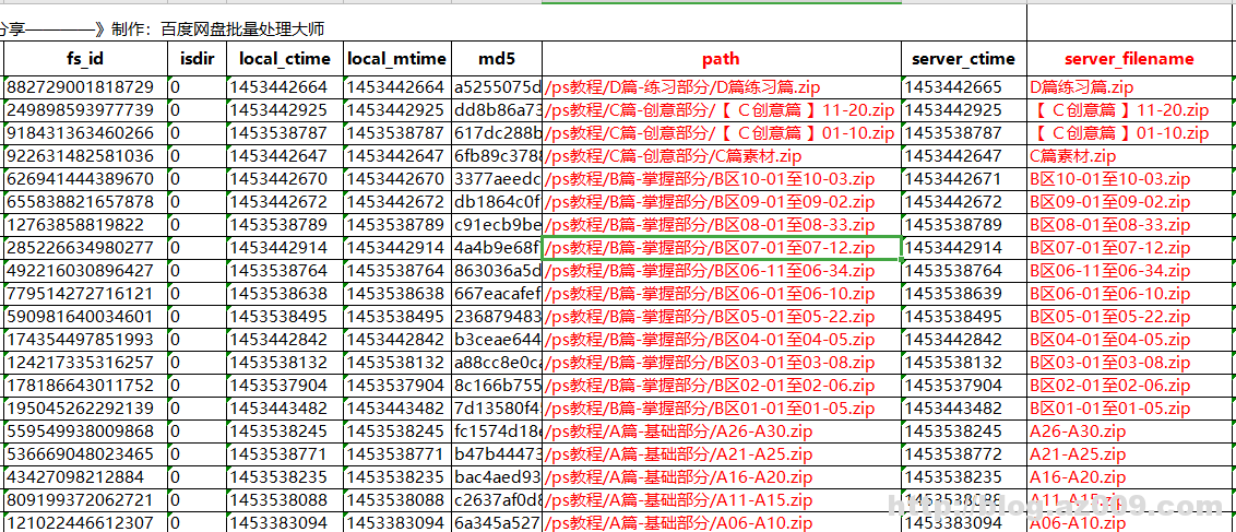 以上就是导出百度网盘群组文件表的演示步骤及结果